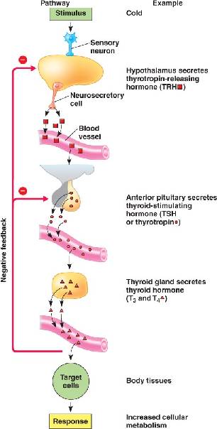 Negative feedback in thyroid hormones.